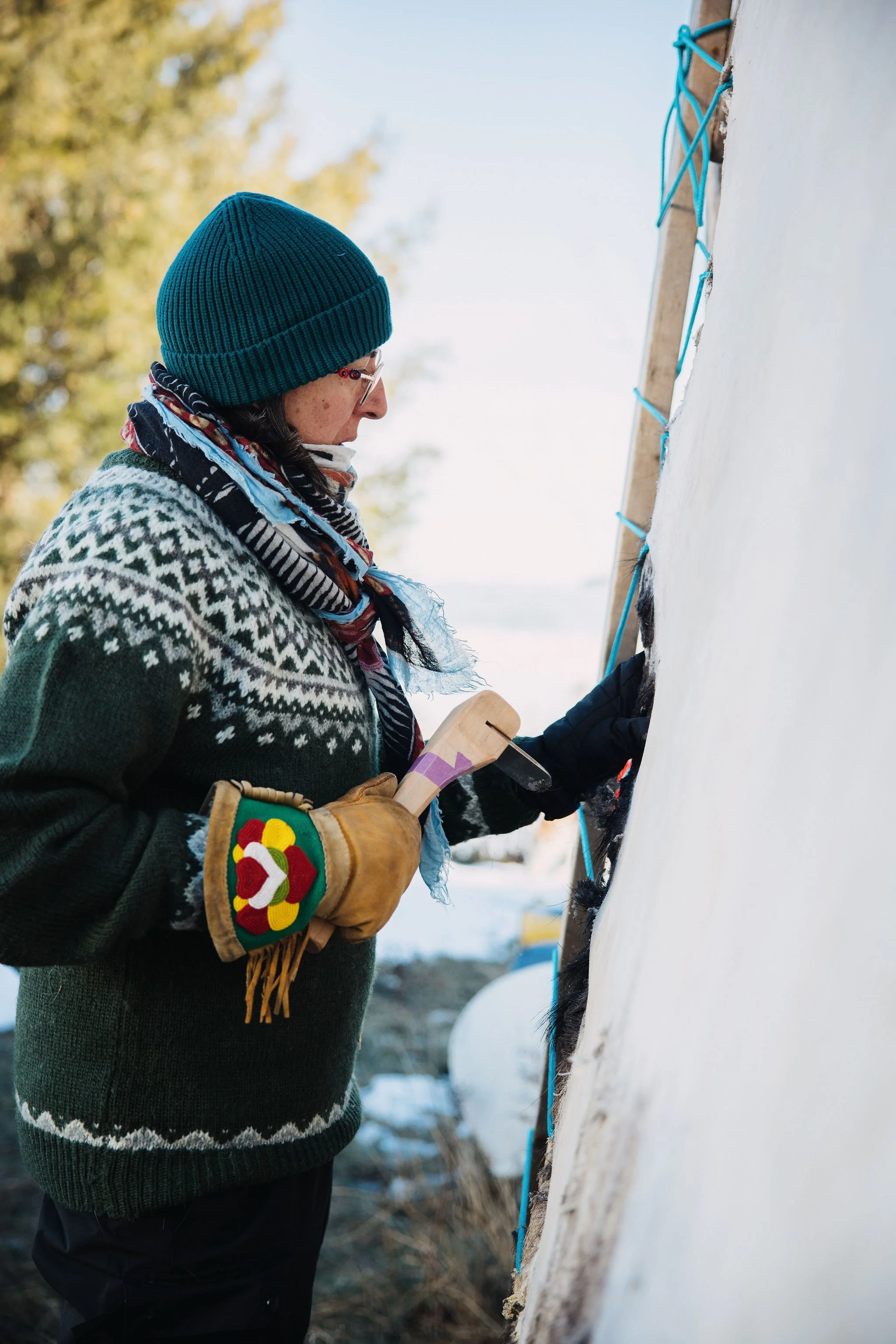 Leanna grew up in an urban setting and as a young adult began to explore her identity and culture. It was through dancing and ceremony that Leanna started to do her own healing work and begin to feel grounded and comfortable with who she is. Working under the tutelage of her twin sister, Jean, Leanna tan hides, including fish, deer, and moose. Working with hide to make leather is a powerful and healing experience. Revitalizing traditional practices including cooking, harvesting, tanning, hunting, trapping, and so much more, is a way to feel a sense of belonging, purpose, and identity.